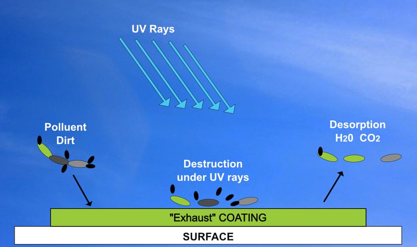 Photocatalysis allows the decomposition and degradation of pollutants under the action of UV rays. It helps to destroy volatile compounds, pollutants and micro-organisms.